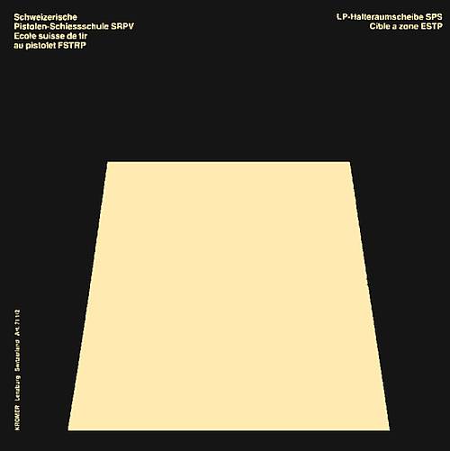 Die Halteraumscheibe ist eine weitere Schulungs-/Ausbildungsscheibe mit einem weissen trapezförmigen Fleck auf schwarzem Grund. Sie dient dem Training des immer gleichen Auslöseraums (früher Halteraum), indem im weissen Fleck gezielt wird. Dabei animiert die Trennlinie weiss/schwarz beim Zielen, mit Korn und Kimme ( Visier) ebenfalls eine saubere Linie anzustreben. Das Schussbild sollte demnach möglichst wenig Abweichung in der Höhe aufweisen.